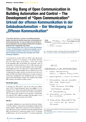 ner persönlichen Perspektive. Oftmals stand er am Anfang zen- Fig. 1: 1975 study for the “BACS” control system, IBM mega-chip plant Böblingen Hulb