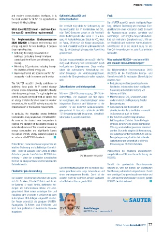 Anforderungen der französischen RE2020-Ver- SAUTER ecos501 © SAUTER zungsfunktion erfüllt eine Kernanforderung der