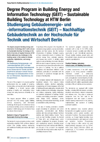 Bachelor’s Degree Program GEIT – systems and digital building models. Topics automation functions. They design automation