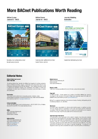 The BACnet Middle East Journal is the Middle East magazine for building automation email: symanczik@tema.de